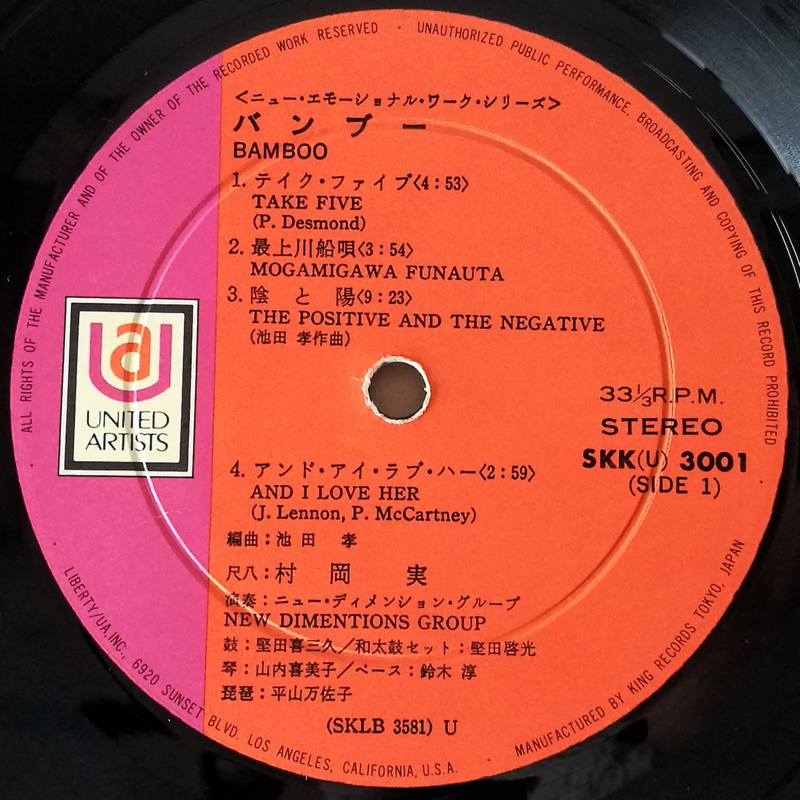 LP Minoru Muraoka / Bamboo '70 United Artists Records Japan Original