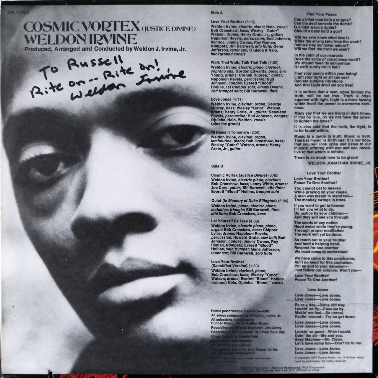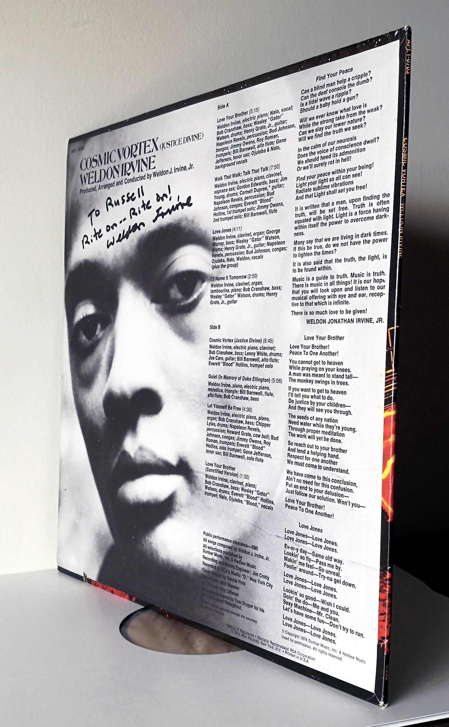LP Weldon Irvine / Cosmic Vortex (Justice Divine) '74 RCA Victor US Original