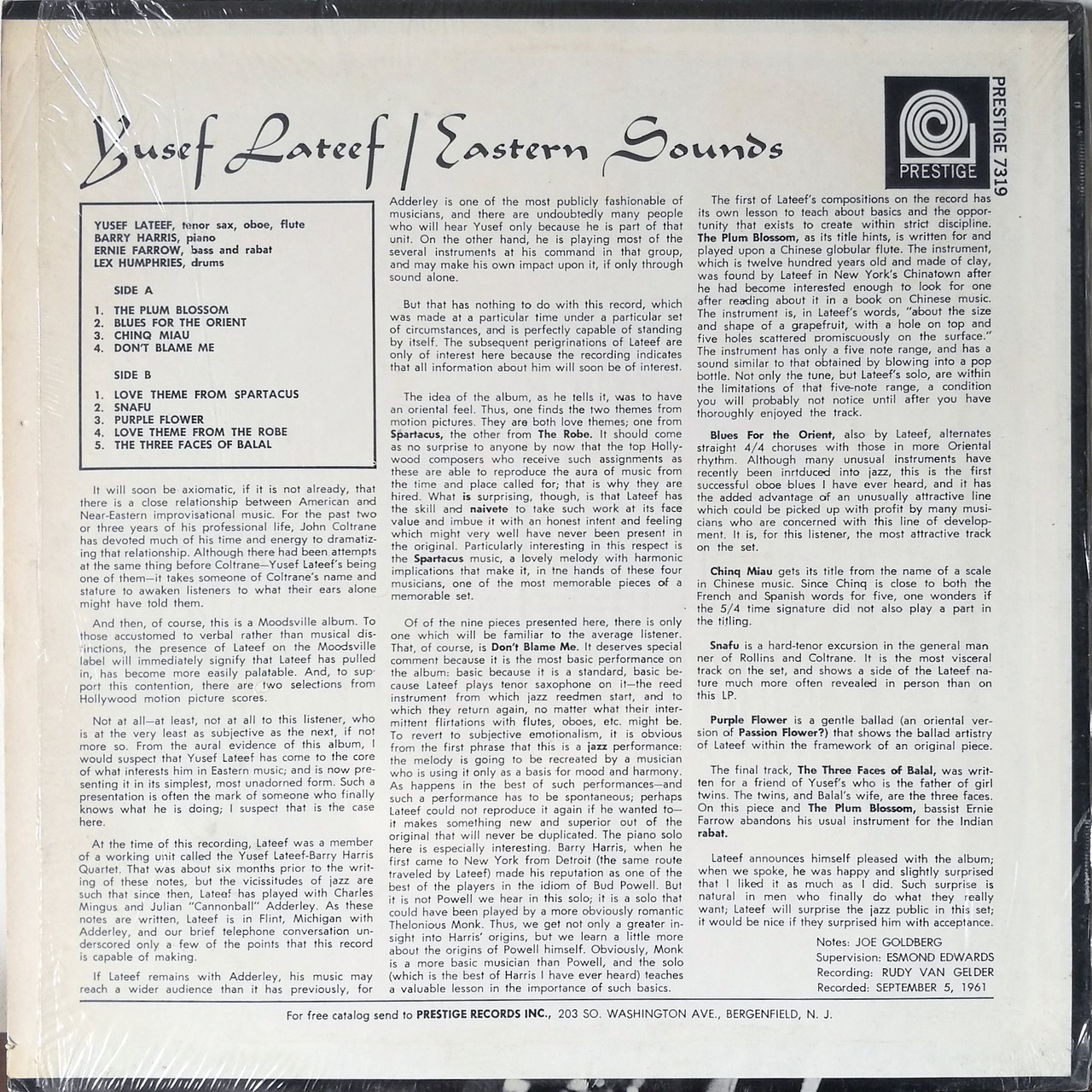 LP Yusef Lateef / Eastern Sounds '69 Prestige US Stereo Late 60's Pressing